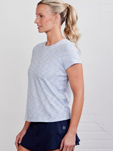 Effortlessly chic and endlessly comfortable, the Uptown Luxe Crossback T-Shirt is designed to move through the day with style and